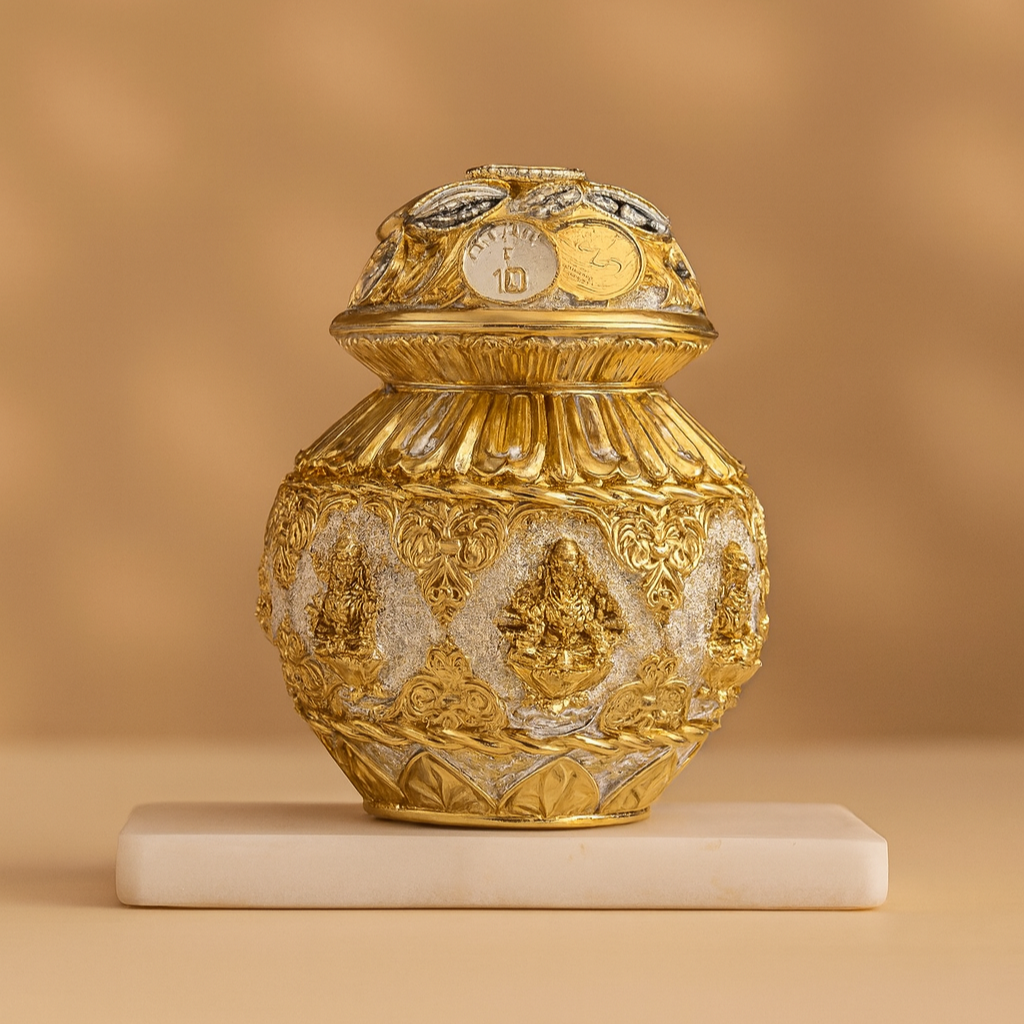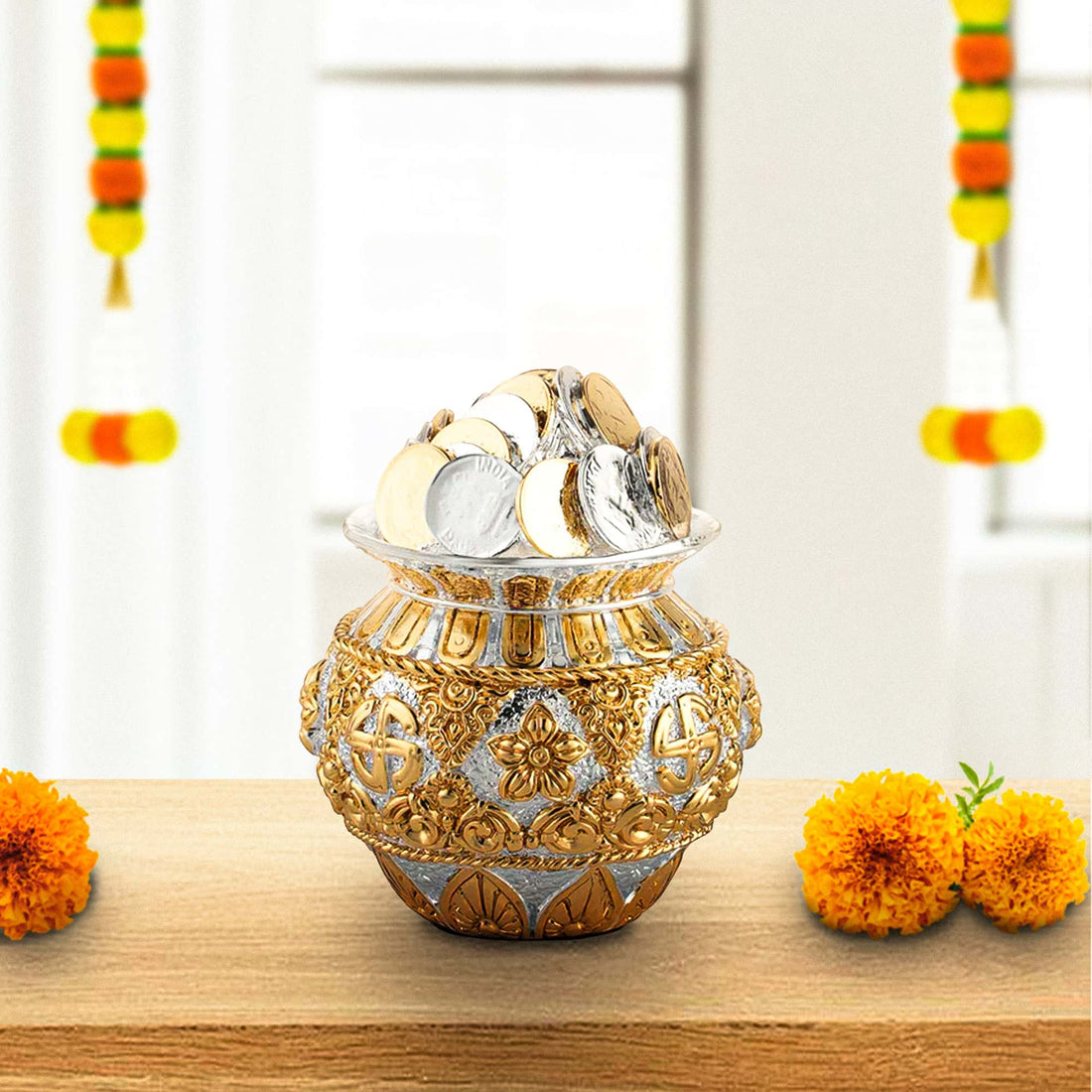 Kuber Coin Kalash Gold & Silver Plated – Symbol of Wealth & Prosperity (5 inches)