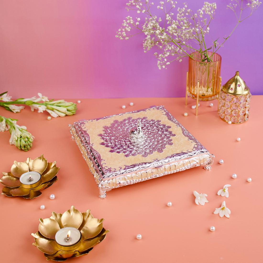 Peacock Enamel Dry Fruit Box – 4 Compartment
