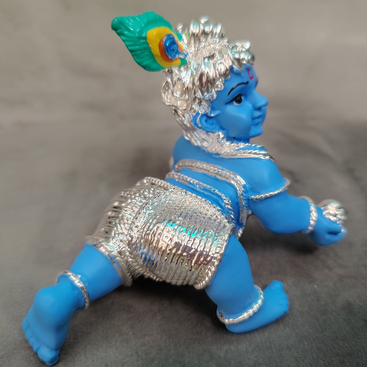 Invoke the blessings of Lord Krishna into your life with this enchanting silver plated Murti. Whether for personal devotion or as a cherished gift, allow the divine energy of Bal Krishna to inspire and uplift your heart and soul.