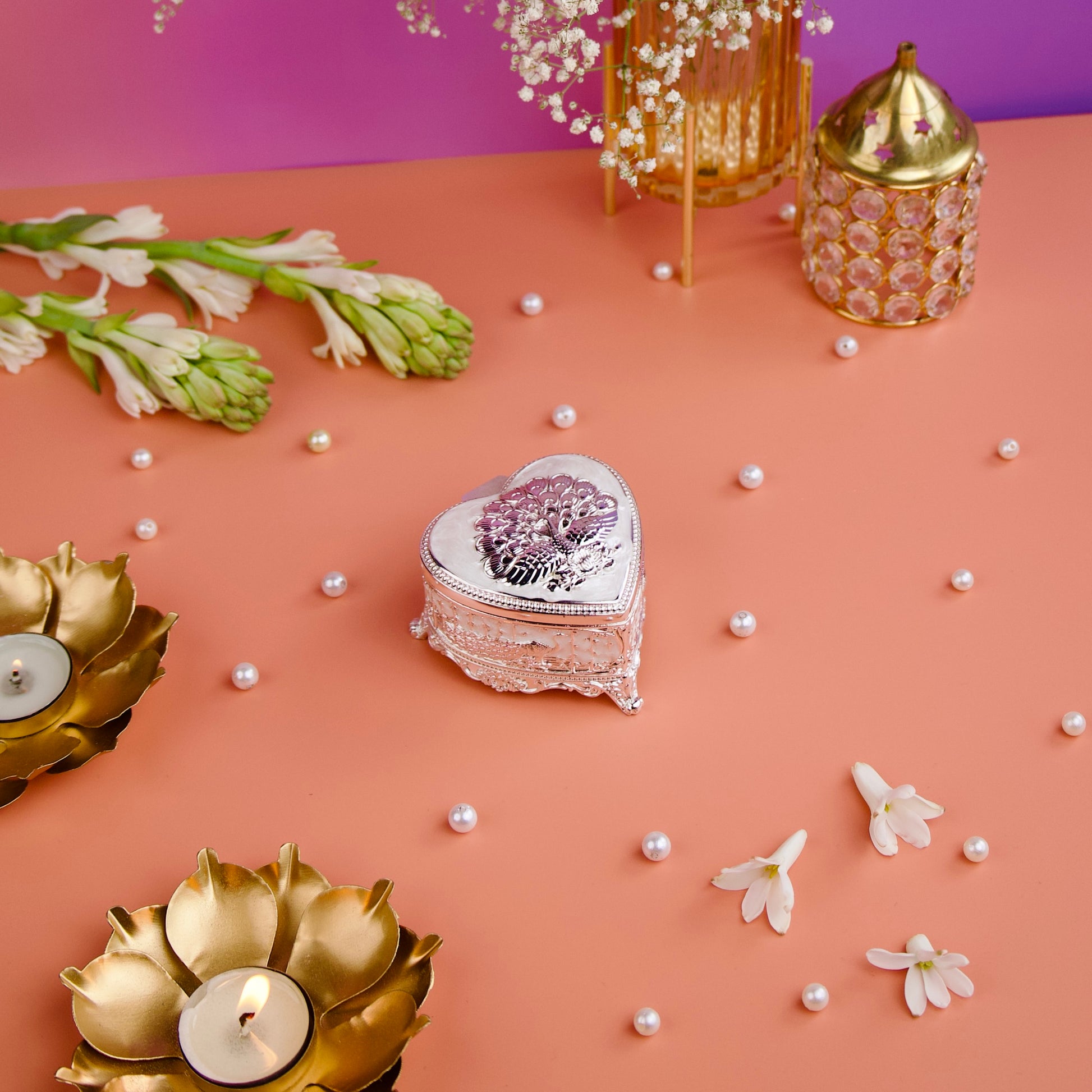 Elegant Heart-Shaped Silver Enamel Box for Jewelry, Dry Fruits & Gifting