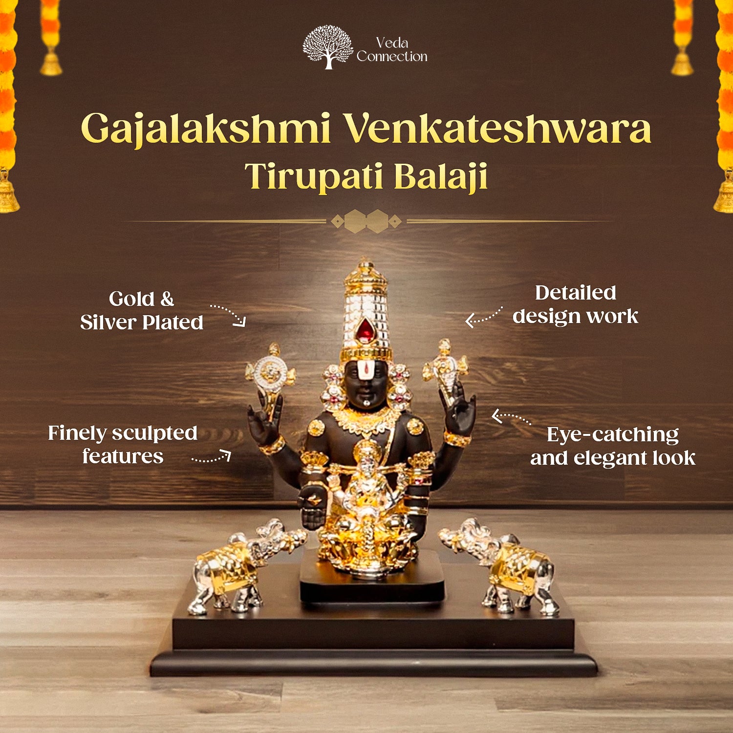 Behold the Gajalakshmi Venkateshwara Balaji Idol, now available in stunning 24K Gold and 999 Silver plating.