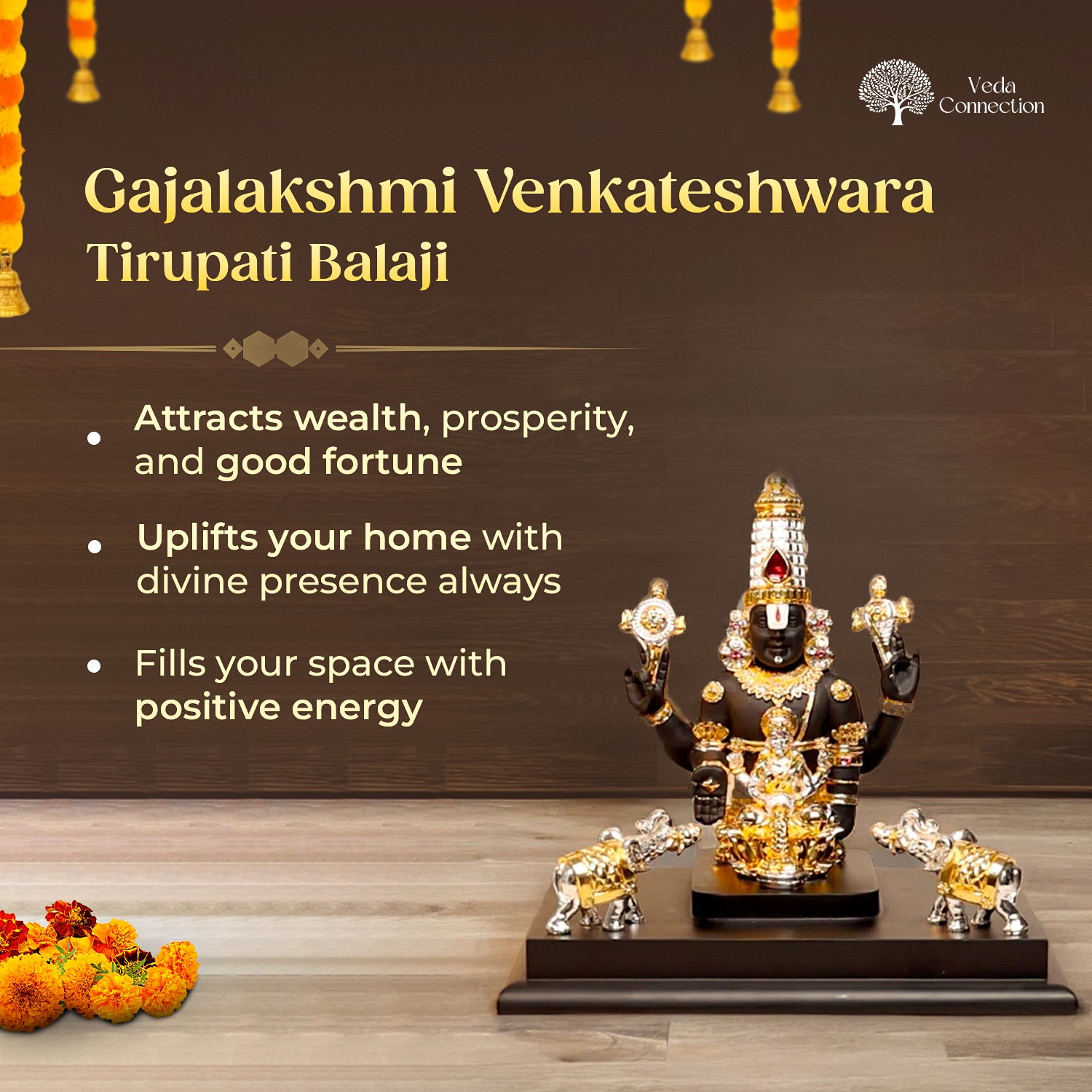 Divine Symbolism: The Gajalakshmi Venkateshwara Balaji Idol represents prosperity, abundance, and divine protection. It is a powerful tool for attracting good fortune and creating a protective aura around your home.
