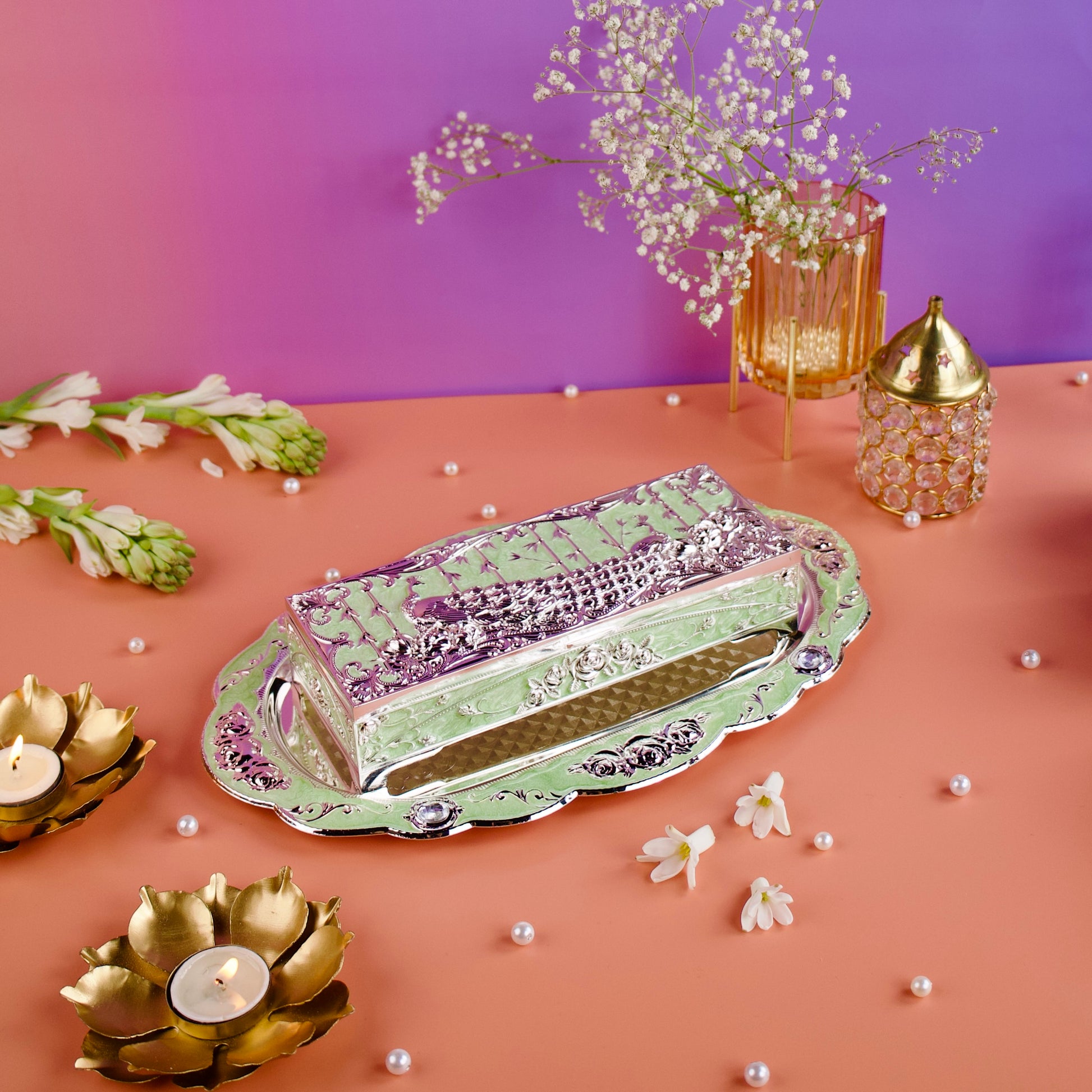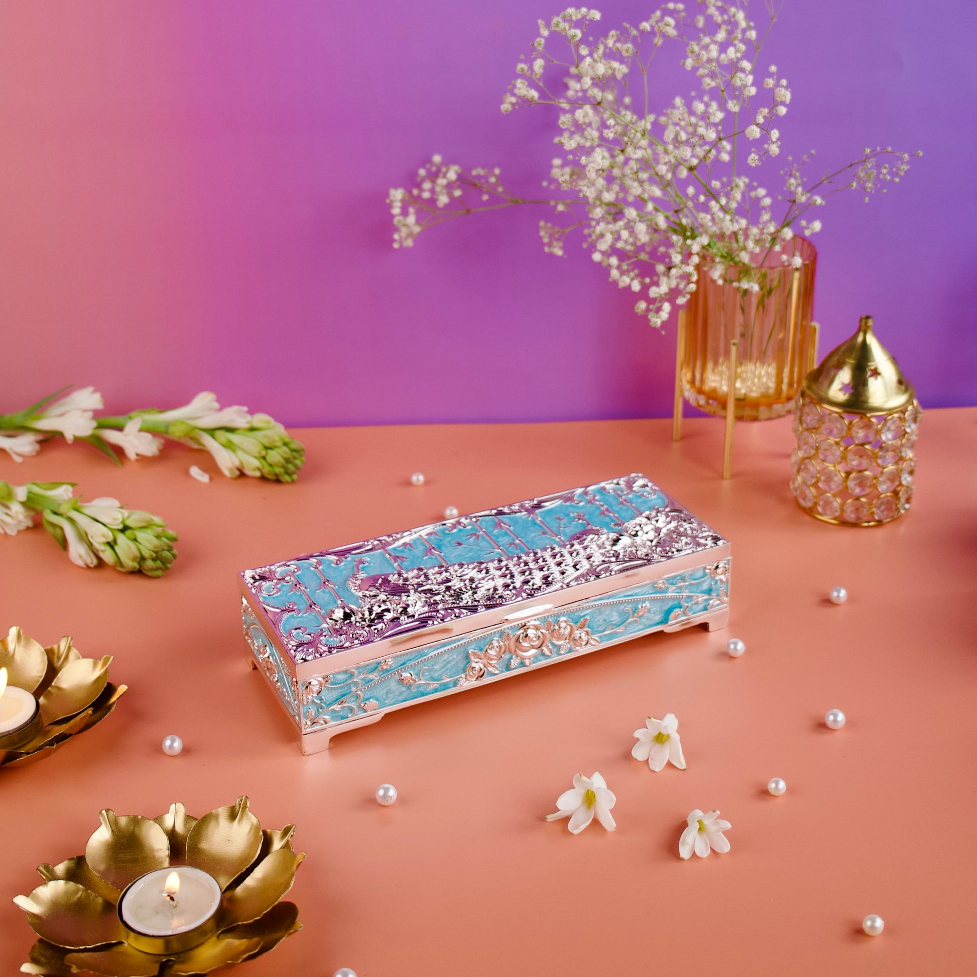 Bring home timeless elegance and functionality with the Regal Peacock Box —