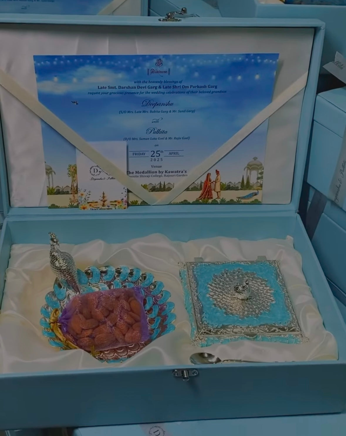 Silver Enamel Mukhwas Box Hamper in Velvet Box | Premium Bulk Corporate & Wedding Gifting