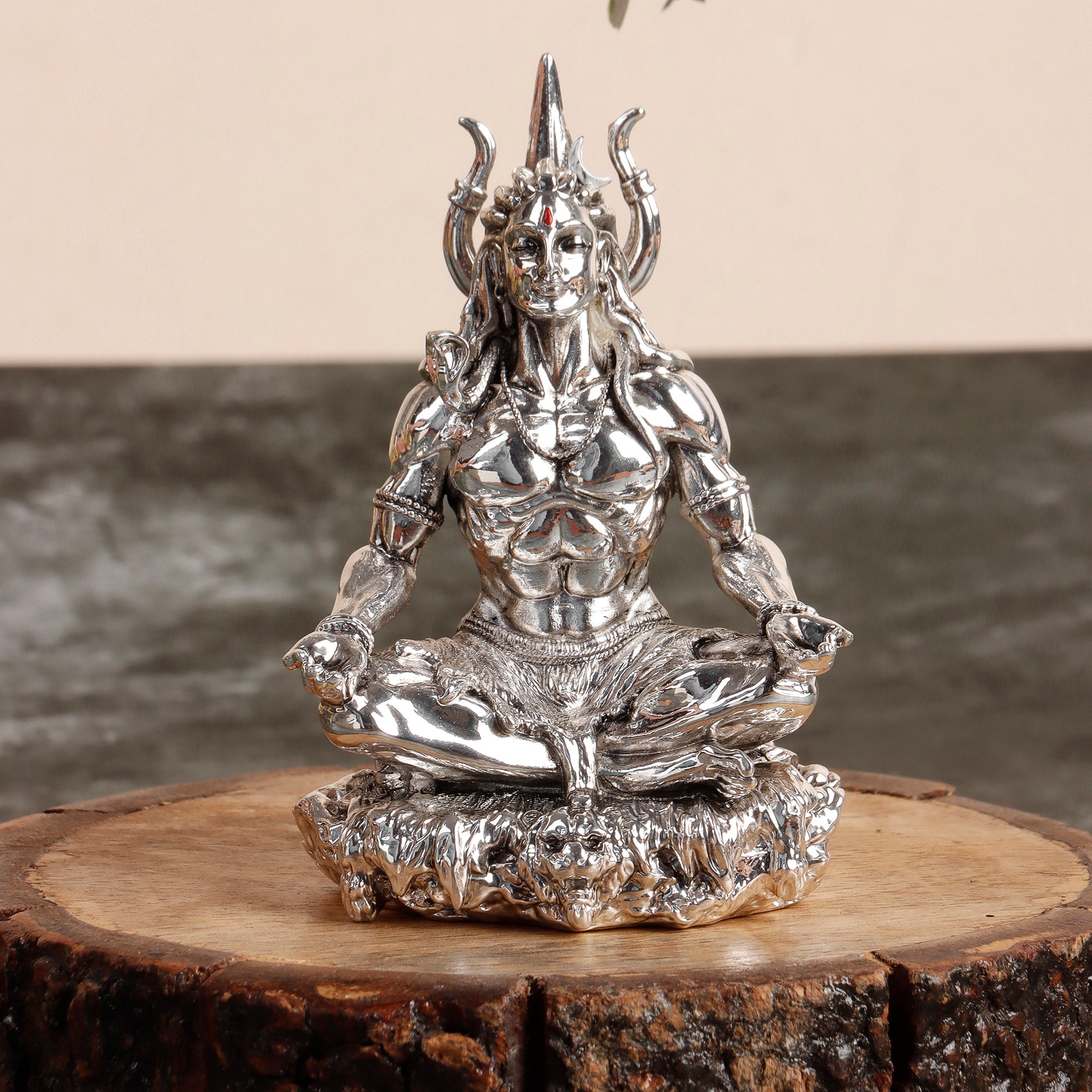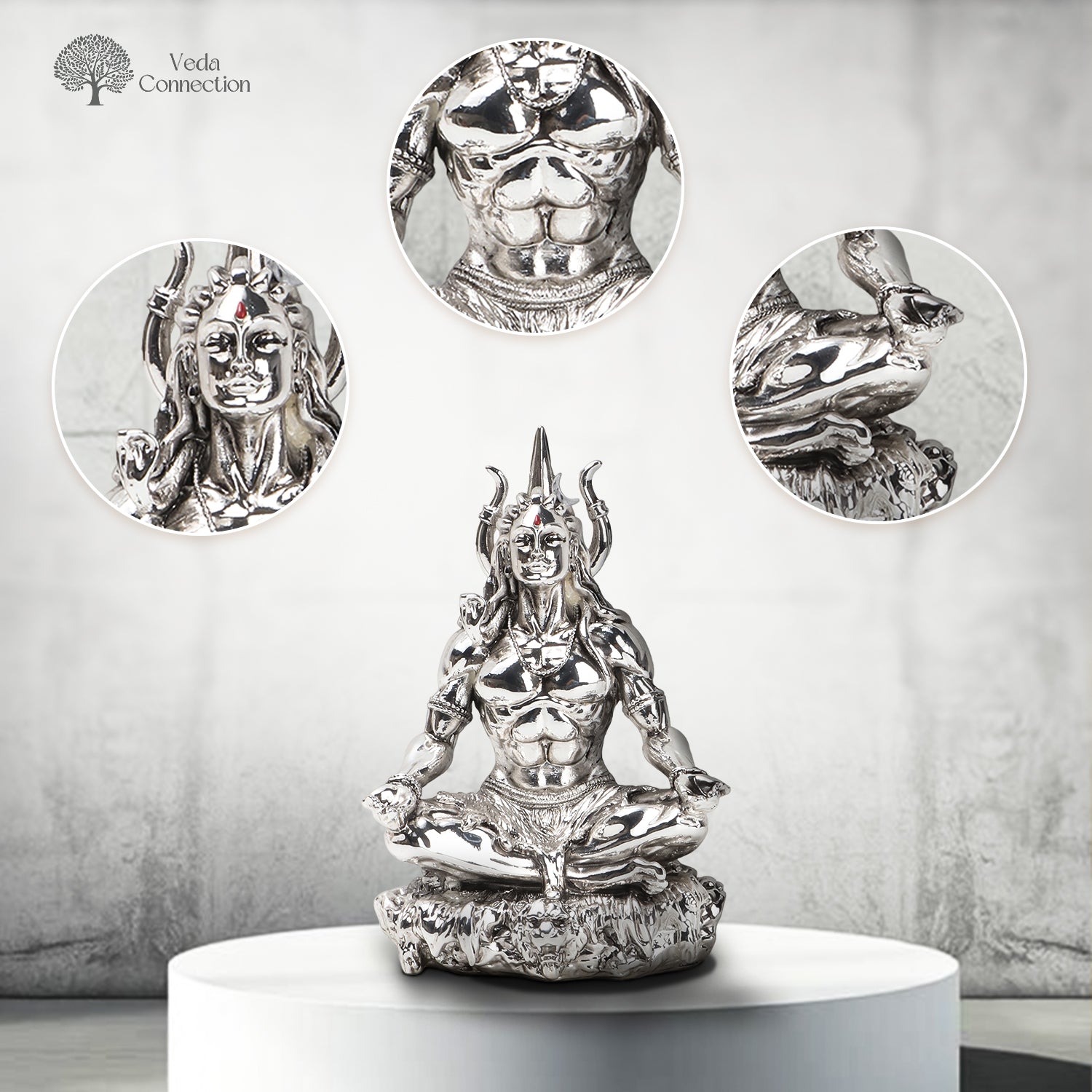 Silver Plated Adiyogi Shiv Ji Idol – 4 Inch