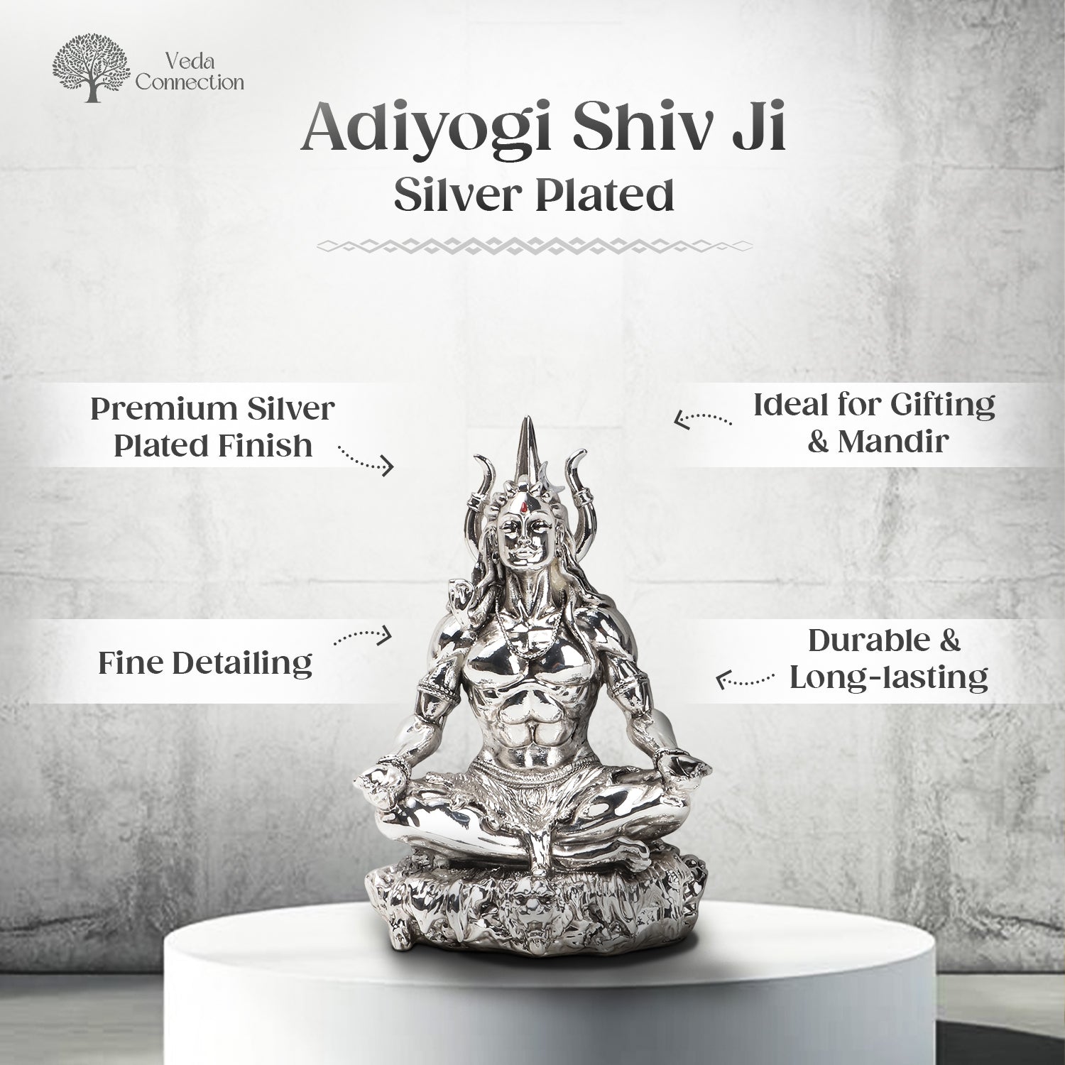 Bring divine energy to your journey with the Silver Plated Adiyogi Shiv Ji Idol from Veda Connection. This 4-inch finely crafted murti is perfect for your car dashboard, home altar, or office desk. Designed with a premium silver-plated finish, it radiates elegance and spiritual strength.